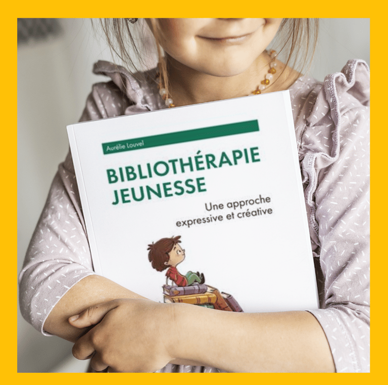 Je suis Aurélie Louvel, fondatrice de Bibliothérapie jeunesse®, formatrice, art-thérapeute certifiée et auteure du tout premier livre consacré à la bibliothérapie pour enfants en France :