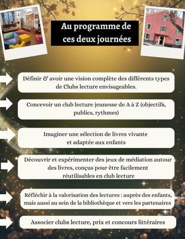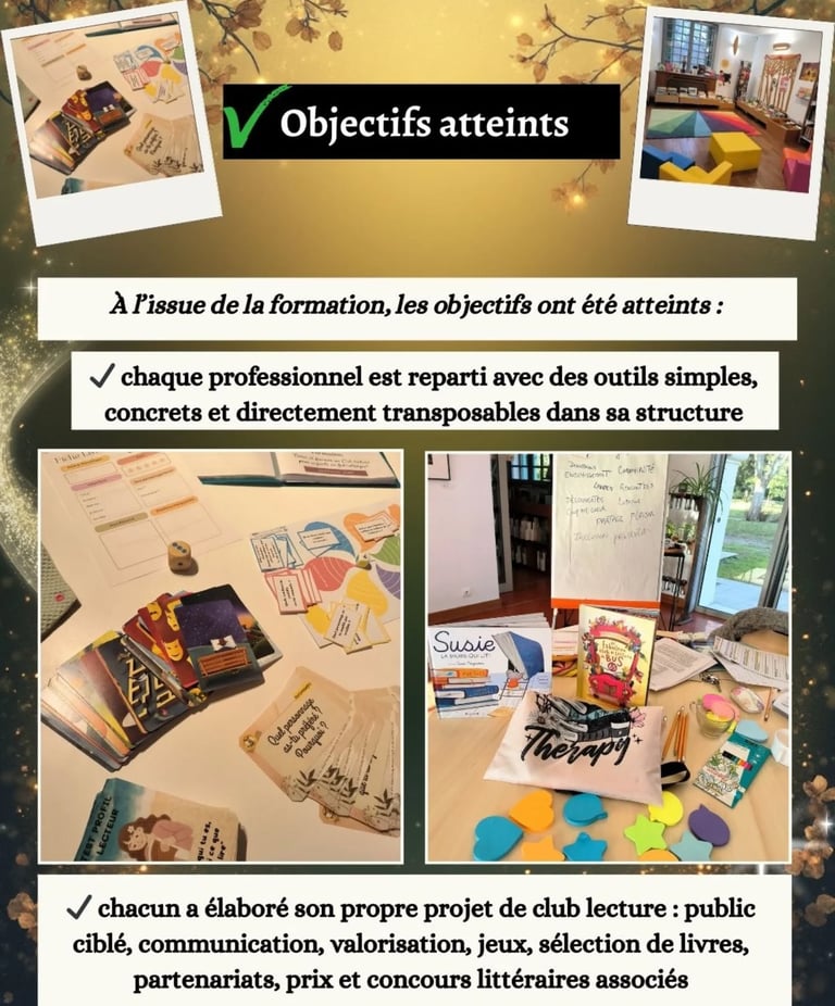 Cette formation avait pour objectif d’accompagner les professionnels dans la conception, l’animation et la valorisation de clubs lecture jeunesse, en tenant compte des réalités de terrain.
